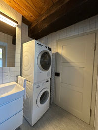 Das grosszügige Bad mit Dusche (mit Regenduschkopf und Handbrause) und WC ausgestattet, zudem eine eigene Waschmaschine, Trockner, ein Bügeleisen und ein Bügelbrett. Ein Haartrockner ist ebenfalls vorhanden. Beachten Sie bitte, dass das Badezimmer nur über das Master-Schlafzimmer zugänglich ist.